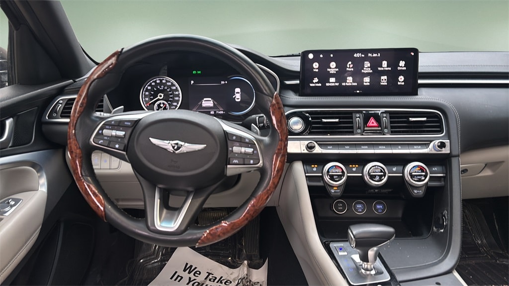 Completely serviced and safety inspected, buy with confidence, Local Trade, AWD, Carfax CERTIFIED Accident Free. 2023 Genesis G70 2.0T Makalu Gray AWD 8-Speed Automatic with SHIFTRONIC I4